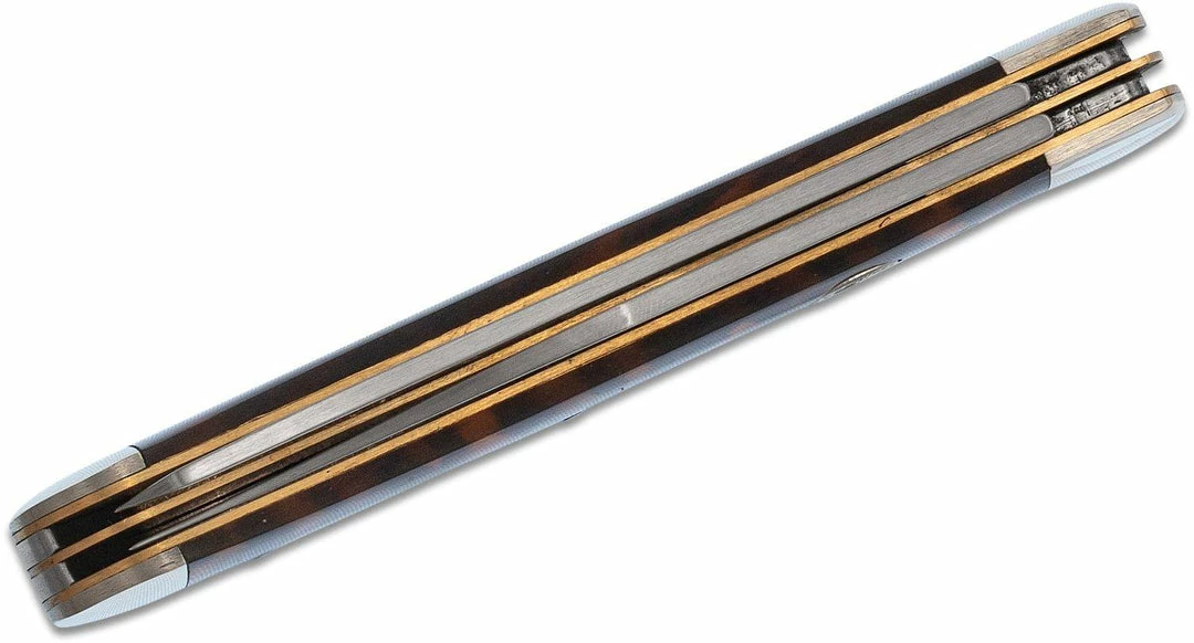 Made of high carbon stainless steel, the clip point and spey blades will serve a variety of tasks. This series of traditional pocket knives offers all the best components. Featuring nickel silver bolsters, brass linings and high carbon stainless steel blades. For those who don’t mind using two hands. With faux tortoise handle scales. Closed length: 4.25″. Item number: 110731T.
