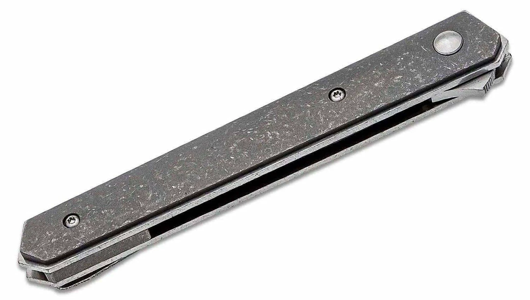 The Boker Plus Kwaiken Air Titan by Lucas Burnley extends the dynasty of the successful Kwaiken family by an elegant lightweight version. With its straightforward and practical shape, this modern pocket knife has become a true icon. The clean lines and slim design of this model have been further optimized to achieve an uncompromising reduction in weight, although the knife still holds the complete blade when closed. The flipper provides intuitive operation and additional safety, while the liner lock securely locks the VG-10 ball bearing blade with a satin-finished Hairline finish. The Gentleman Folder’s light-footedness is underlined by the high-quality titanium handle scales, which gives the knife an extremely modern look. The knife comes with a lanyard hole, detachable deep carry clip (tip-up/r), and a high-quality nylon case for storage.