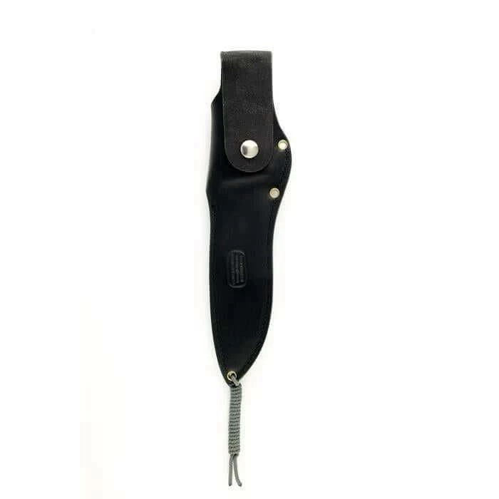 Keep your Green Beret or Pacific looking sharp while tucked away snug in a leather sheath. Featuring a simple snap to hold onto your belt and paracord for emergencies. Each sheath is carefully carved and sewn by the seasoned leather craftsmen at G’feller Casemakers. Left or right hand oriented.