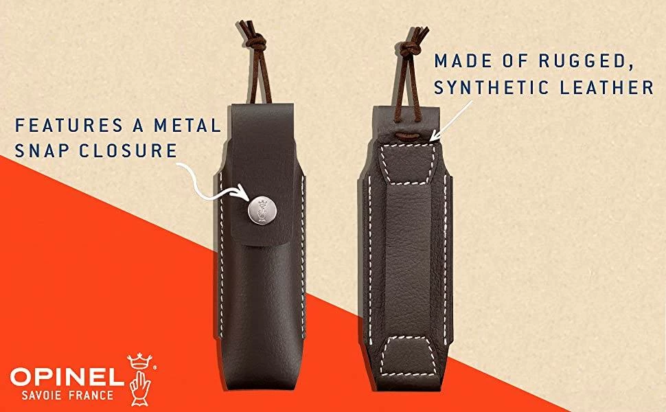 This beautiful Opinel No 8 Carbon Steel Knife w/ Sheath (Gift Box) is perfect for Fathers Day and birthdays. The sheath included with this knife is made of rugged synthetic leather. This combo pack comes in a carboard box that can be gift wrapped.