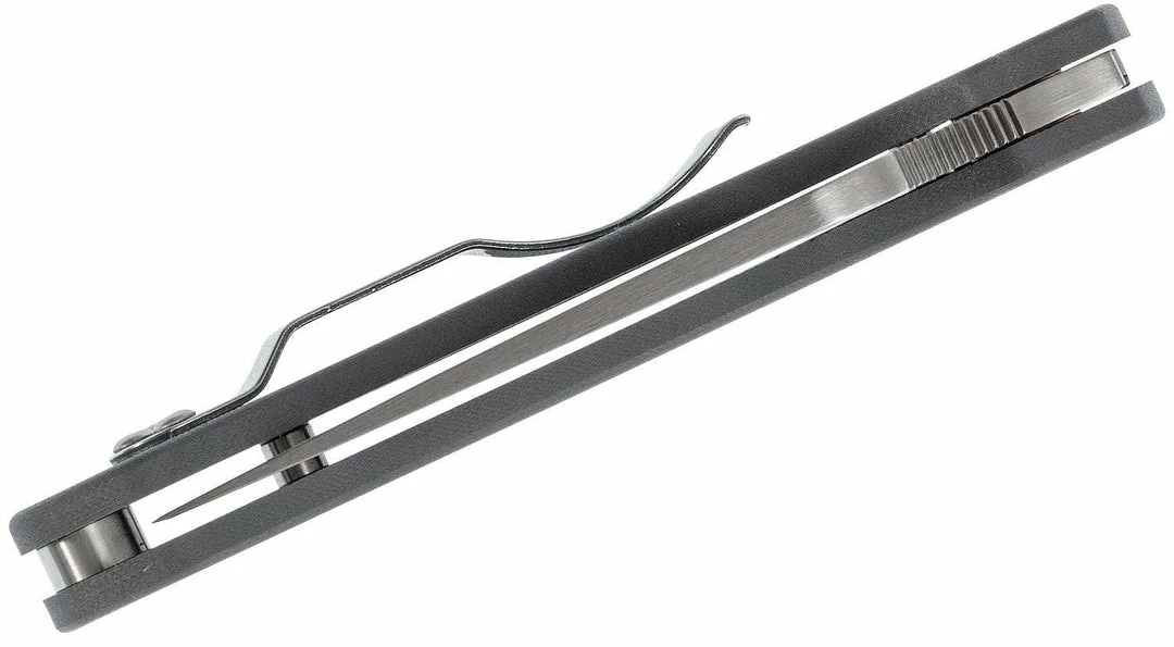 The lightweight, open-backed handle is built on a framework of stout stainless steel liners nested within textured G10 scales. This refined construction style maximizes both structural strength and ergonomics while keeping the handle slim and pocket-friendly. It’s also the foundation of the knife’s patented Compression Lock mechanism, which provides exceptional lock strength, yet allows easy one-handed closing without placing your fingers in the path of the blade’s edge. A streamlined four-position hourglass clip and a generously sized lanyard hole round out the design, offering a choice of left or right-side tip-up or tip-down carry and allowing the easy attachment of lanyards or fobs.