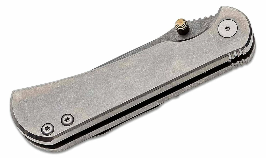 Toor Knives Merchant FL35S Folding Knife 3.5″ CPM-S35VN Stonewashed Drop Point Blade, Stonewashed Titanium Handles – Stone