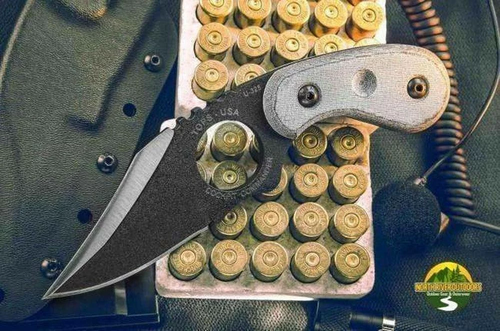 We all know the dramatic and disastrous results that may take place when bad guys get into the cockpit of a plane. This specialty knife has all the earmarks of a knife that cannot easily be taken from your hand. The finger hole keeps the knife in your hand and allows for comfortable deployment and use. The sharpened upper edge gives the user extra cutting options and also allows for deeper penetration. This knife has also become a favorite for lawmen requiring a good hide away.
